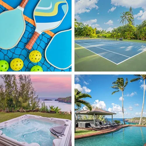 The Secret Beach House offers an expansive wrap around lanai, with outdoor seating areas to relax, a swimming pool and spa, add in a regulation tennis court, this is much more than a rental home, it’s a family compound. The fruit orchard and organic garden filled with produce and local fruit is yours to enjoy throughout the seasons. You are steps away the famous and private white sand Secret Beach.