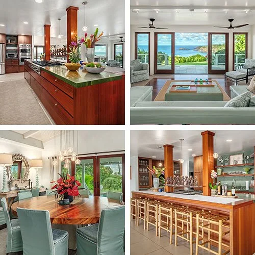 The chefs kitchen is well stocked with all the gadgets. The Balinese dining table seats 12 comfortably. Our great room offers endless views of the Kilauea lighthouse. From sunrise to sunset paradise is at your fingertips. The Secret Beach House is the place to relax refresh and renew. The estate offers private and ample living spaces for a large groups to spread out in comfort.